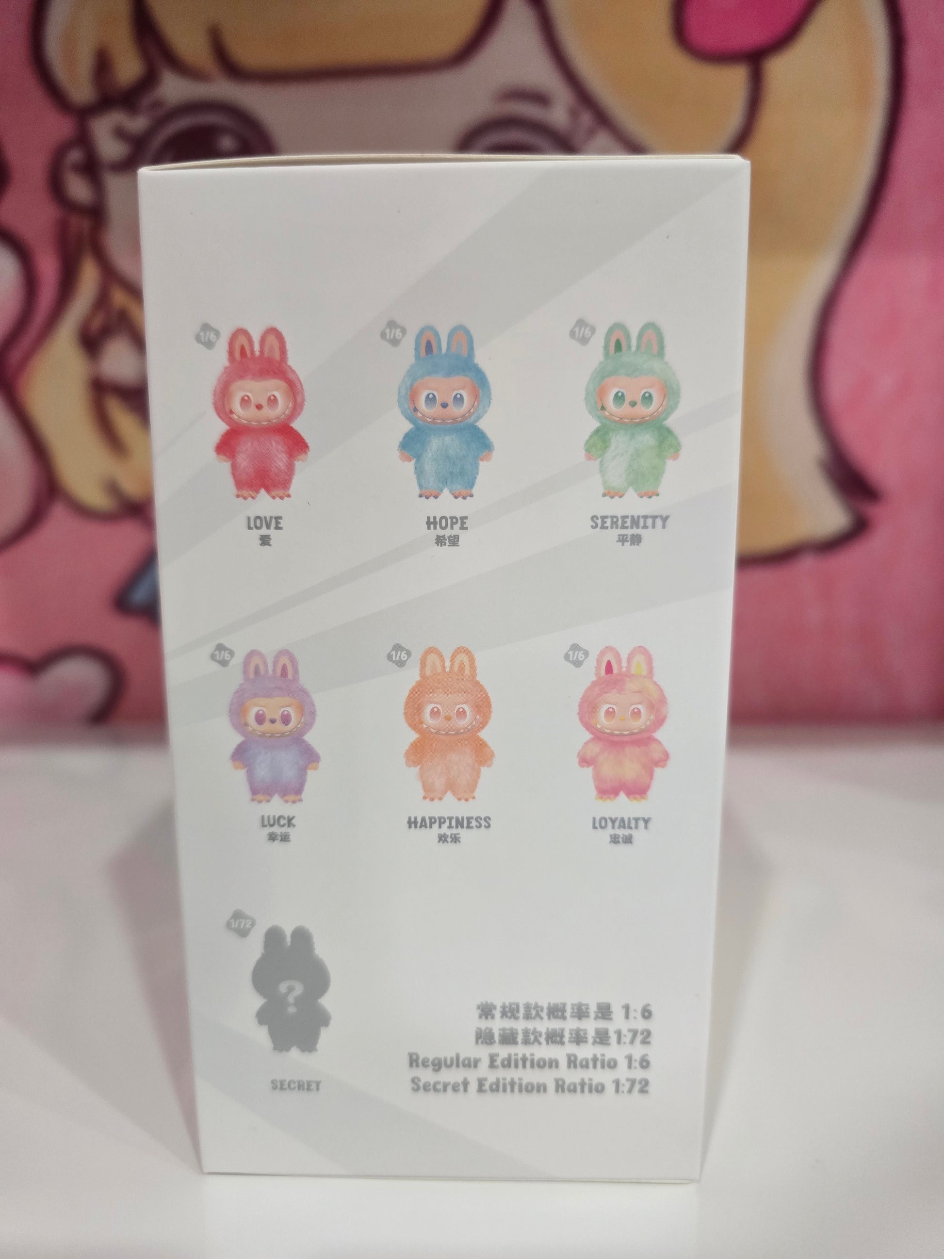 Packaging: The figures are sold in "blind boxes," meaning the specific figure inside is a surprise until opened. A full set of six figures can be purchased, which includes one of each basic design and a chance to get the secret figure.