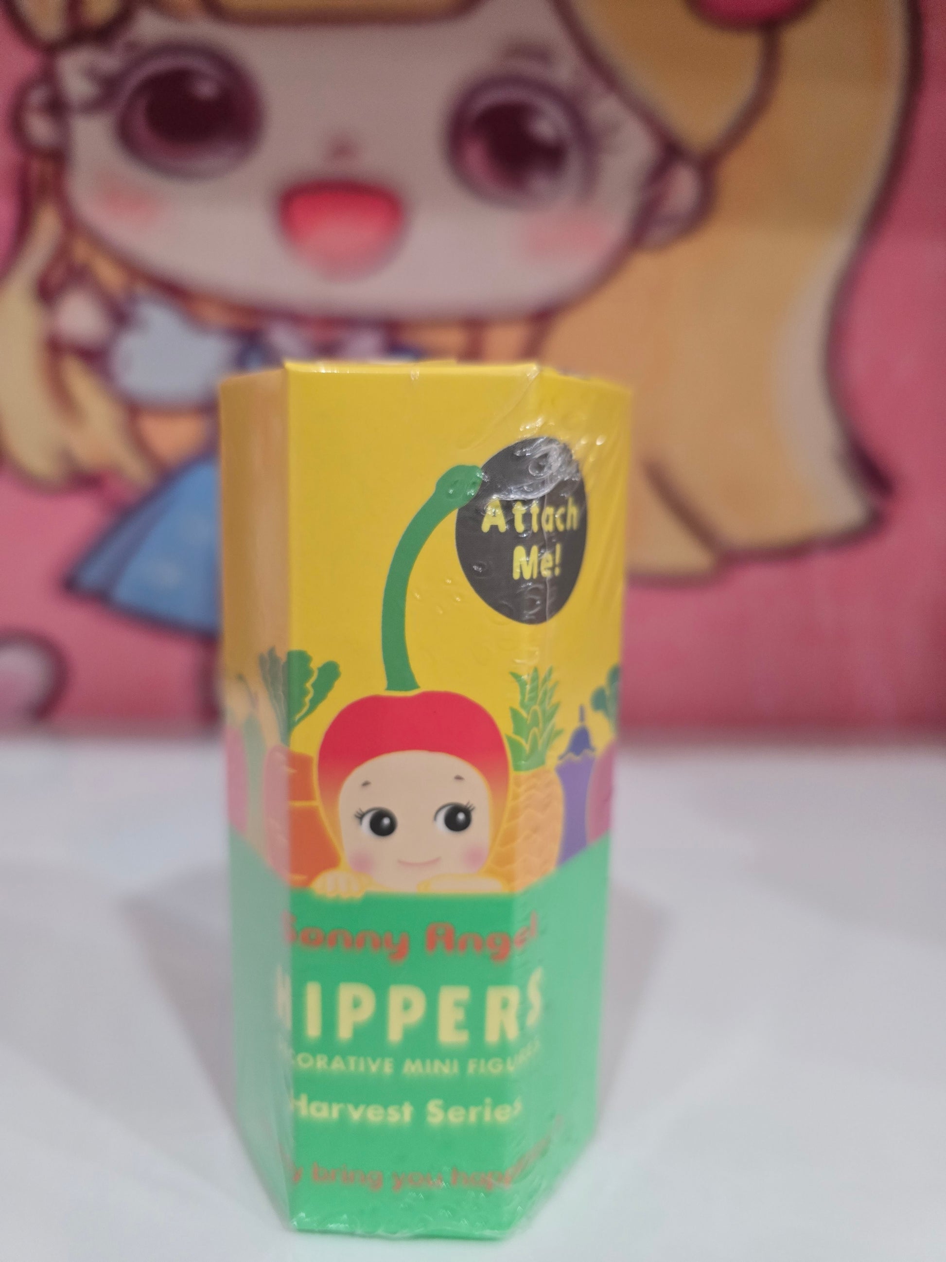 The Sonny Angel Harvest series is a collection of decorative, cherub-like figures wearing fruit and vegetable headdresses. These mini figures have an adorable "climbing" pose and can be attached to flat surfaces like laptops, smartphones, and flower pots using reusable adhesive tape. They are sold in blind boxes, meaning each one contains a surprise character from the set of 12, with a rare secret figure also a possibility.